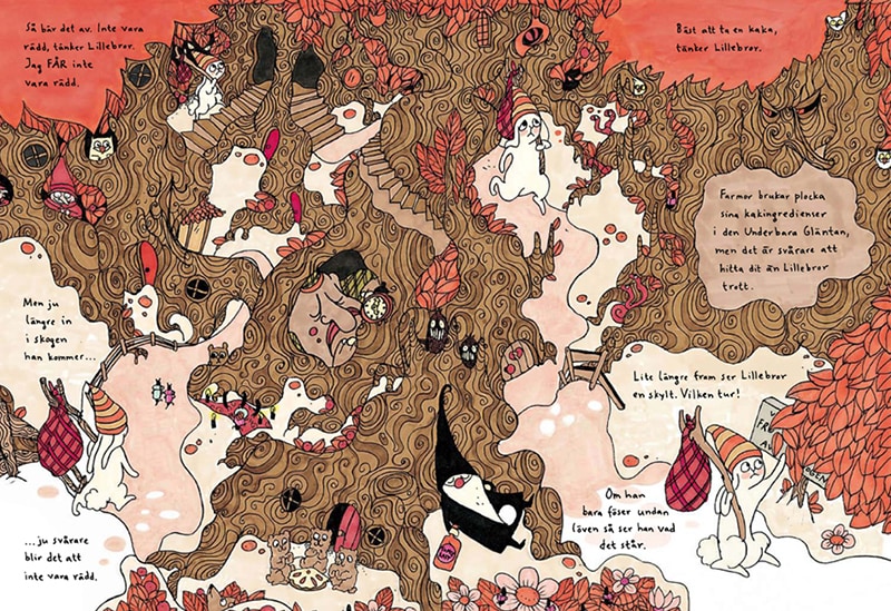 – Gamla folksagor och fabler tycker jag är intressanta eftersom de befolkar skog, mark och gårdar med magiska väsen som tomtar, troll, skogsrån och vättar. Allt detta passar bra in i familjen Kanins sagoskog. Klassiska sagor, som de av bröderna Grimm till exempel, gillar jag av samma anledning. Och att de ofta är ganska ogenerat grymma. CS Lewis, Michael Ende och Roald Dahl är andra fantastiska berättare som alla beskriver magiska världar som inspirerat mig. Stephen King är grym på att berätta läskiga historier. Sen älskar jag illustratörer som John Bauer och Tim Burton. Tim Burton för hans humoristiskt makabra stil och John Bauer för hans underbara bilder av skogen.